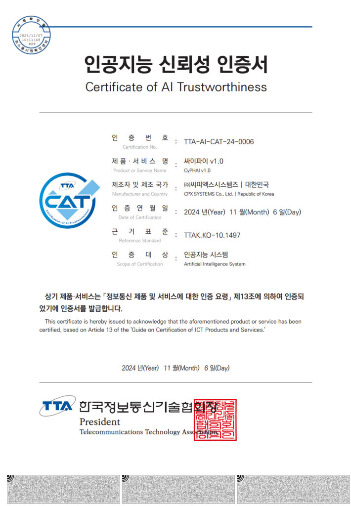 - 주요내용 : 기반 표준 – TTAK.KO-10.1497 / 지침서 버전 – CAT1.0 v1.1.0