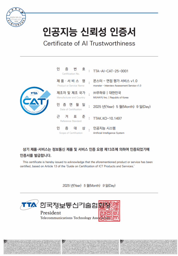 - 제품명 : 몬스터-면접 평가 서비스 v1.0